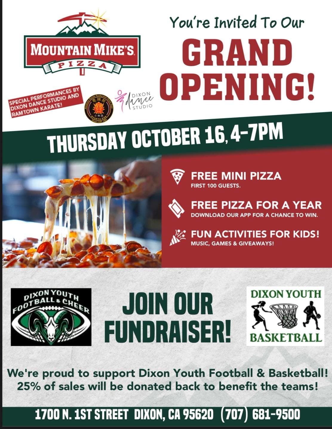 Grand Opening and Fundraiser. Funds raised will go towards Dixon Youth Football & Cheer and Dixon Youth Basketball.