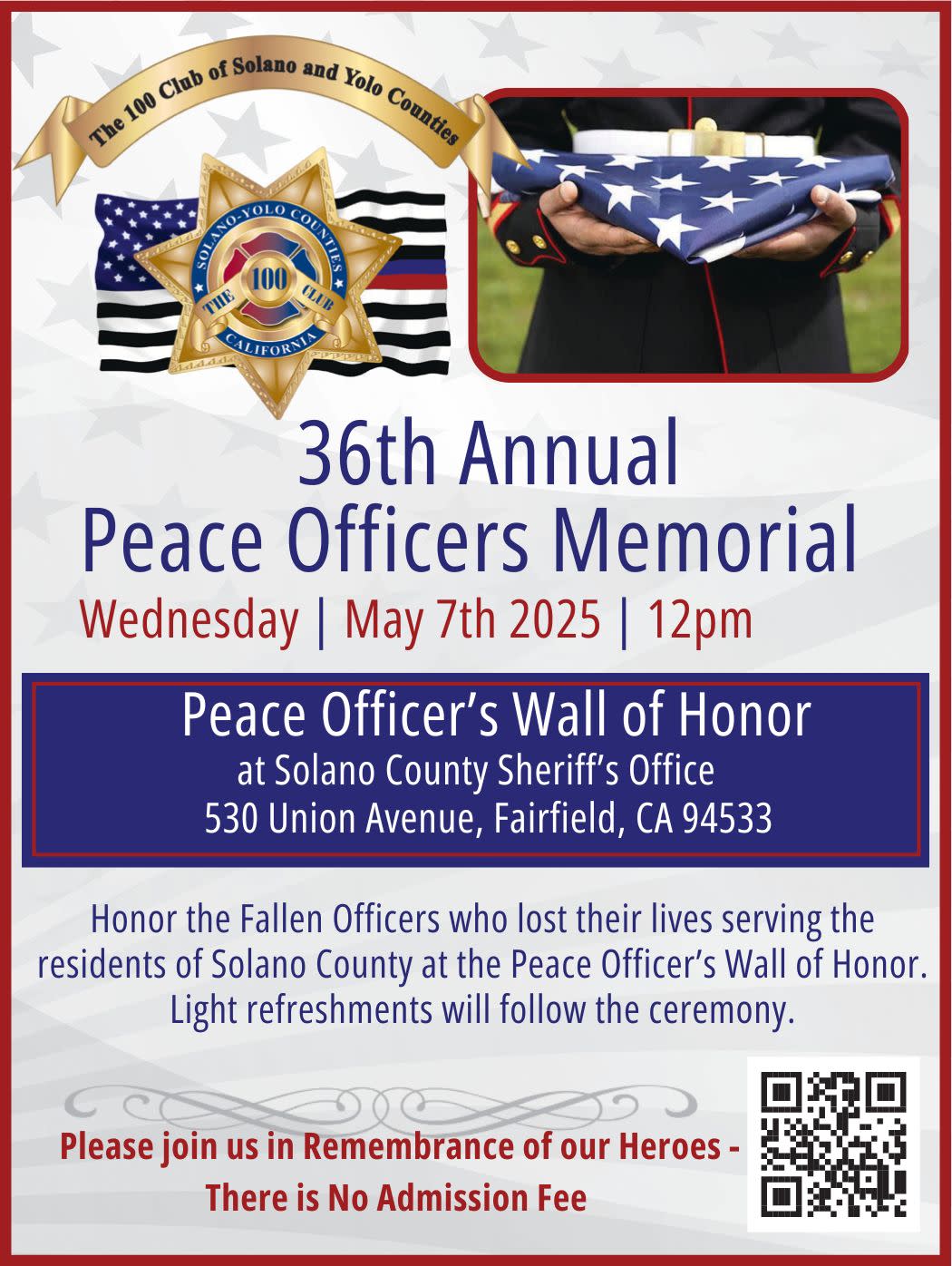 JOIN US AS WE HONOR THE FALLEN OFFICERS WHO LOST THEIR LIVES SERVING THE RESIDENTS OF SOLANO COUNTY AT THE PEACE OFFICER'S WALL OF HONOR.