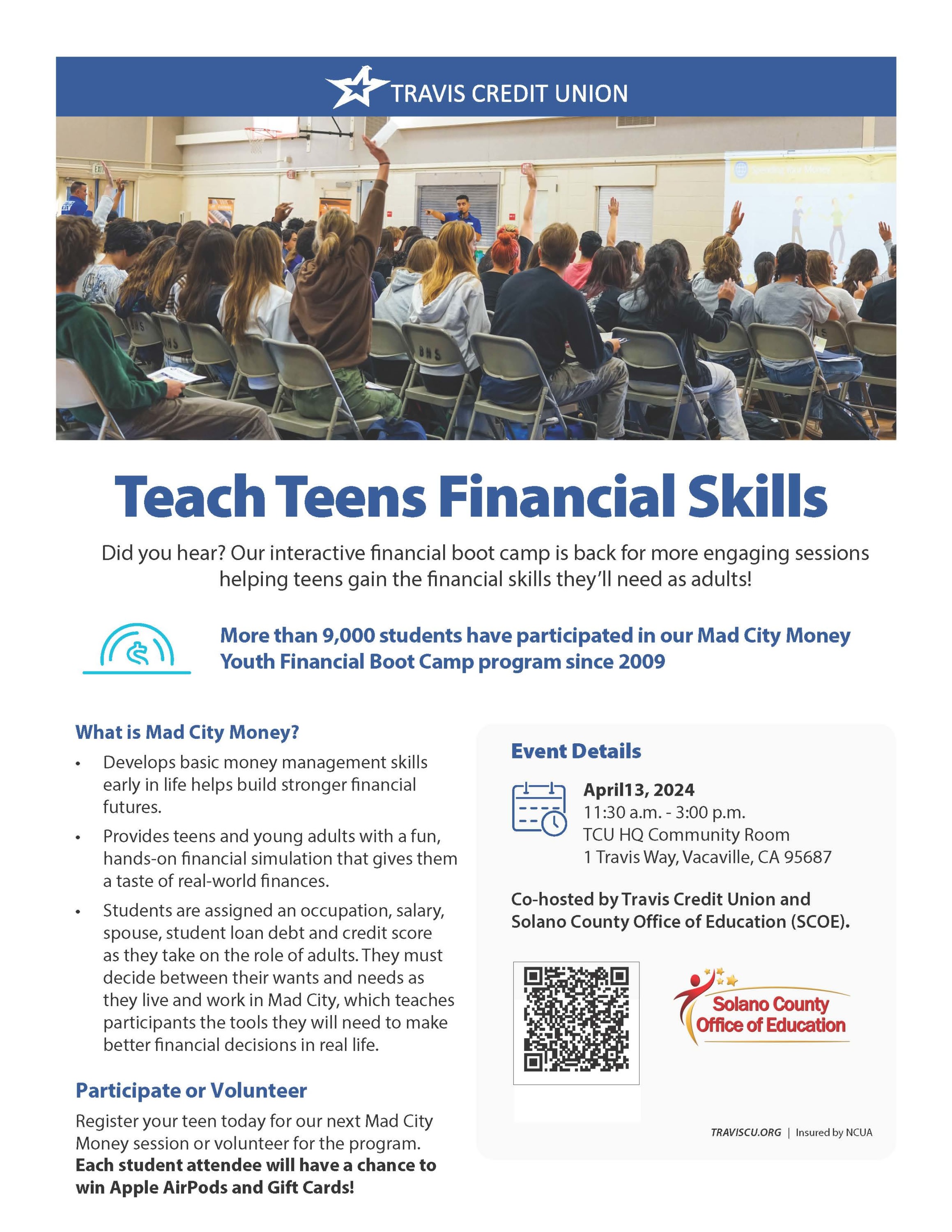 Co-hosted by Travis Credit Union and Solano County Office of Education (SCOE).