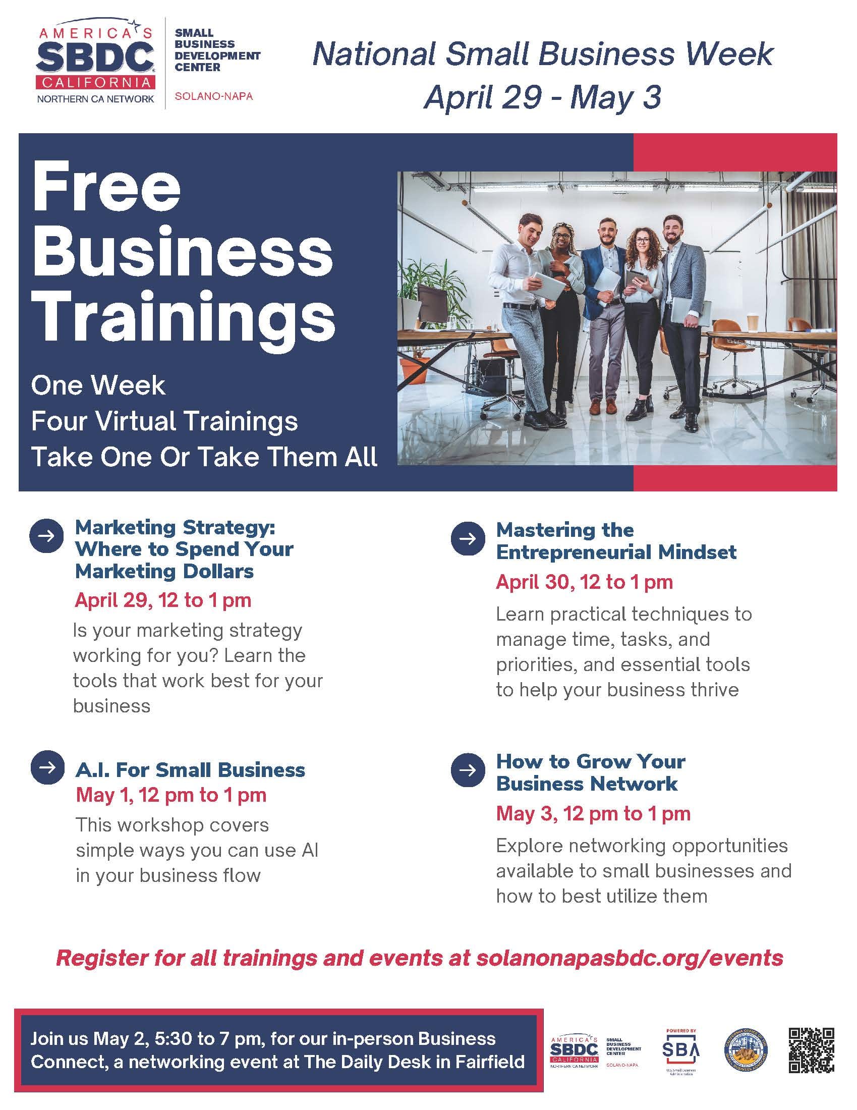 Free Virtual Trainings - Register at https://www.solanonapasbdc.