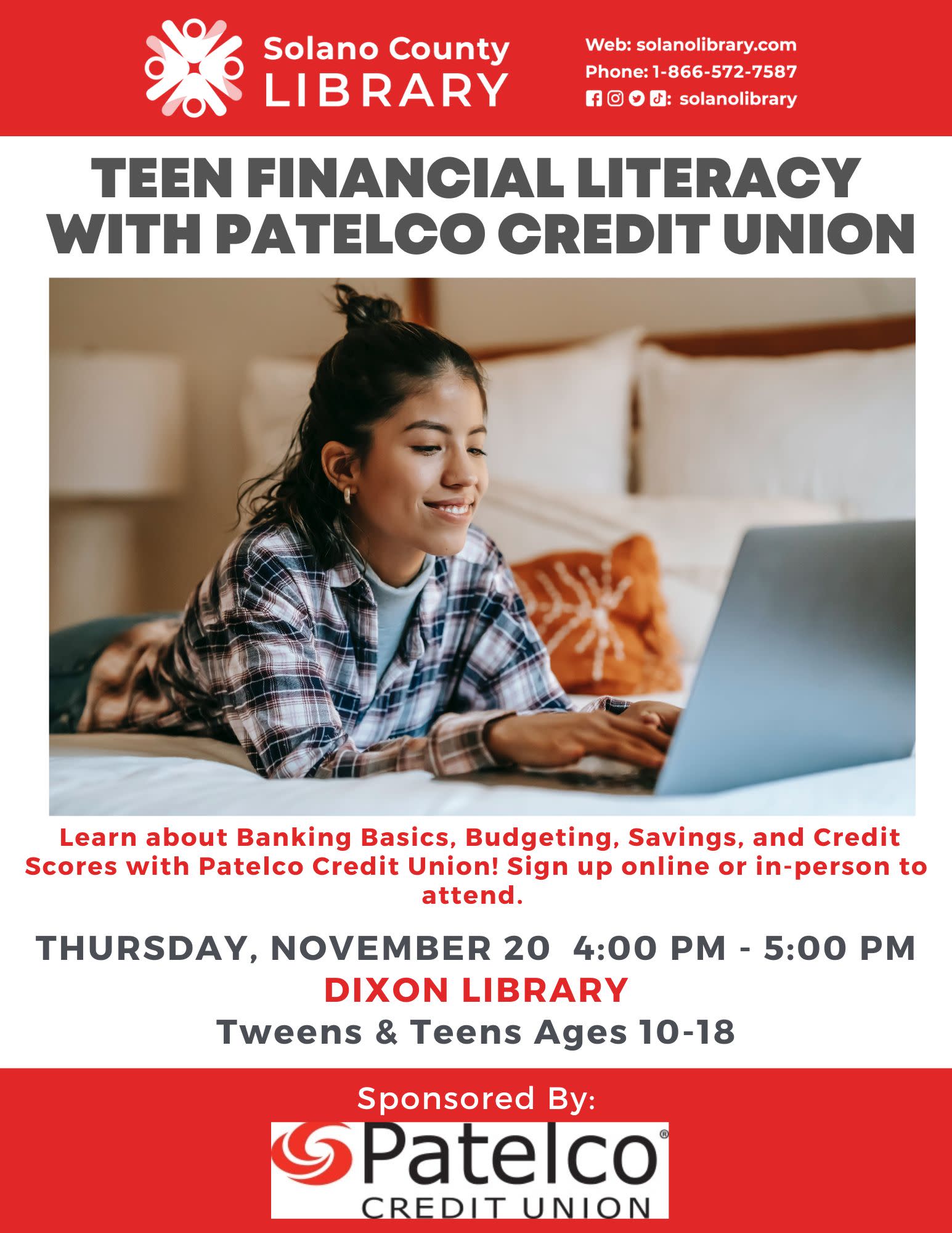 Teen Financial Literacy with Patelco Credit Union at The Dixon Library